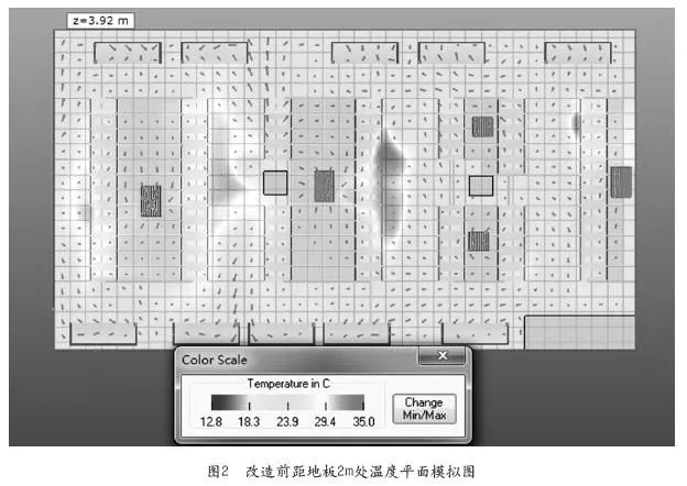 通過將空調運行參數(包括送風溫度,回風溫度,風速等)輸入到CFD軟件中,通過軟件模擬和分析可以計算出空調運行效率,進而對比改造前后空調運行效率的變化。