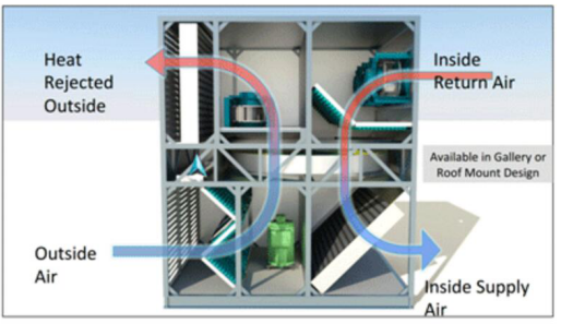 利用Kyoto wheel(滾動式熱交換器)作為過濾器更好的改善這個問題。它由一個通過兩部分空間旋轉(zhuǎn)的金屬輪組成。 當冷空氣通過第二部分進入時,中心的熱空氣流過一個空間。 當熱空氣流過一個空間時,熱量傳遞到車輪的金屬中,然后空氣流回數(shù)據(jù)中心,而外部空氣則從金屬吸收熱量。