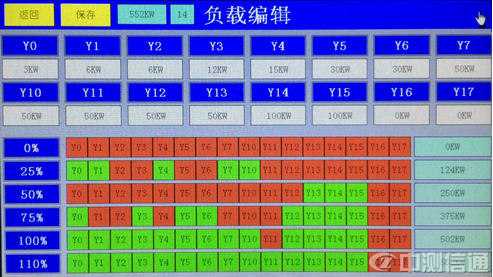 如圖(100KW控制圖):首先設(shè)置各輸出口功率:Y1~Y17,功率從小到大設(shè)置。再設(shè)置25%,50%,75%,100%,110%,該由那些負載投入,設(shè)定后按返回鍵。
