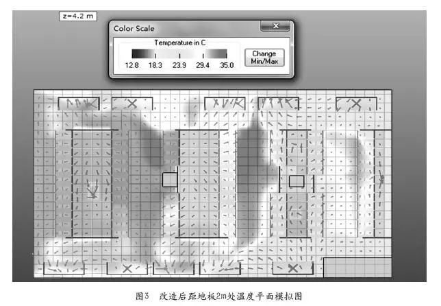 通過將空調運行參數(包括送風溫度,回風溫度,風速等)輸入到CFD軟件中,通過軟件模擬和分析可以計算出空調運行效率,進而對比改造前后空調運行效率的變化。