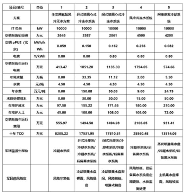 數(shù)據(jù)中心主流空調(diào)方案TCO及軍團(tuán)菌風(fēng)險(xiǎn)對(duì)比