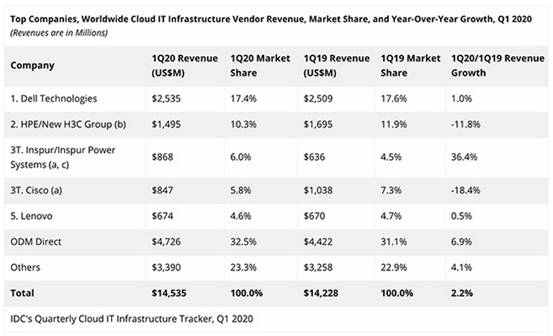 面向公共云和私有云等云環(huán)境的IT基礎(chǔ)設(shè)施產(chǎn)品(服務(wù)器、企業(yè)存儲和以太網(wǎng)交換機(jī))銷售的供應(yīng)商收入在2020年第一季度增長了2.2%,而傳統(tǒng)的非云基礎(chǔ)設(shè)施的投資根據(jù)IDC公司的調(diào)查數(shù)據(jù),同比下降了16.3%。