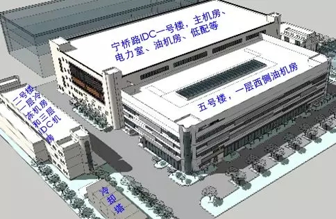 寧橋數(shù)據(jù)中心是上海移動(dòng)利用原金橋地區(qū)惠而浦廠房改建成的互聯(lián)網(wǎng)企業(yè)定制的高端數(shù)據(jù)中心。惠而浦廠區(qū)內(nèi)有一號(hào)樓廠房、二號(hào)樓廠房和五號(hào)樓廠房,老廠房的建設(shè)面積為18500平方米,建筑層數(shù)3層,改建后共7個(gè)機(jī)房模塊,共安裝機(jī)柜2000個(gè),總外市電容量2路16000kVA。