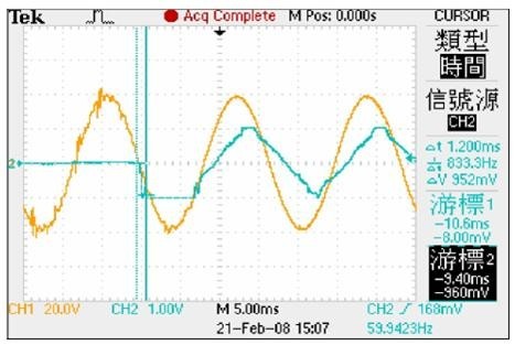 除了提高UPS自身的效率之外,UPS上面的一些功能也可加以利用。比如像ECO經(jīng)濟運行模式。其原理是在較好 的市電環(huán)境時,激活此功能,使UPS由靜態(tài)旁路直接供電,此時逆變器處于待機狀態(tài),正常工作,但不輸出能 ,一旦市電異常,UPS立即切換到逆變器供電狀態(tài),切換時間一般在1ms以內(nèi),具體見圖2所示,藍色為輸入電 波形,黃色為輸出電壓波形。由于此時的逆變器處于待機狀態(tài),所以自身損耗很小,此時UPS的整機效率可以達 到97%以上,比正常模式節(jié)省3%以上的功率。