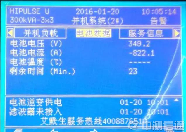 UPS接假負載后進行電池放電測試的電池參數(shù)