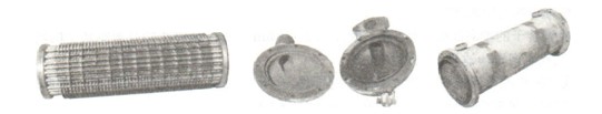 圖6-37 潤滑油冷卻器零件分解實物圖(芯子、邊蓋、殼體)