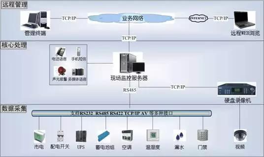 機(jī)房環(huán)境監(jiān)控系統(tǒng)是一個(gè)綜合利用計(jì)算機(jī)網(wǎng)絡(luò)技術(shù)、數(shù)據(jù)庫技術(shù)、通信技術(shù)、自動(dòng)控制技術(shù)、新型傳感技術(shù)等構(gòu)成的計(jì)算機(jī)網(wǎng)絡(luò),提供的一種以計(jì)算機(jī)技術(shù)為基礎(chǔ)、基于集中管理監(jiān)控模式的自動(dòng)化、智能化和高效率的技術(shù)手段,系統(tǒng)監(jiān)控對(duì)象主要是機(jī)房動(dòng)力和環(huán)境設(shè)備等設(shè)備(如:配電、UPS、空調(diào)、溫濕度、漏水、煙霧、視頻、門禁、消防系統(tǒng)等)。