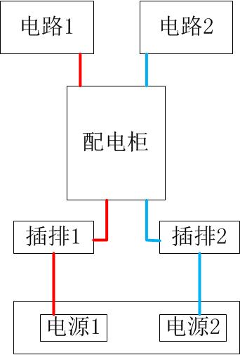 上面這種,從電路到電纜全都是兩套供電裝置的方式即為雙路電源,能允許任何一個位置單點故障而不影響最末端的IT設備使用。請注意,我這里用兩種顏色來表示電纜,電路1和電路2分別經由兩條來自不同位置的供電電纜同時進入機房配電柜,由配電柜出來也是經由兩條電纜進入機柜內兩條插排的。這是真正的雙路電源供電模式,安全可靠性是最高的。