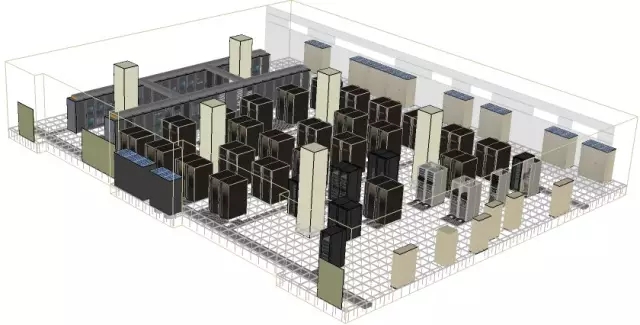 在機房現(xiàn)場,用CFD軟件進行建模,即建造出一個虛擬機房,這個虛擬機房的機柜擺放、服務(wù)器配置、空調(diào)大小和位置、氣流組織布置,甚至機房高度、地板高度、走線架布置、照明燈管數(shù)量和位置、橫梁、立柱等等,都是依照真實機房而建立。